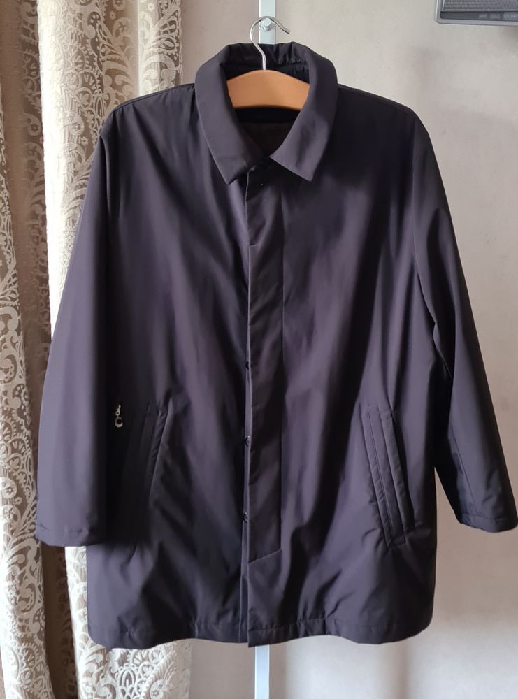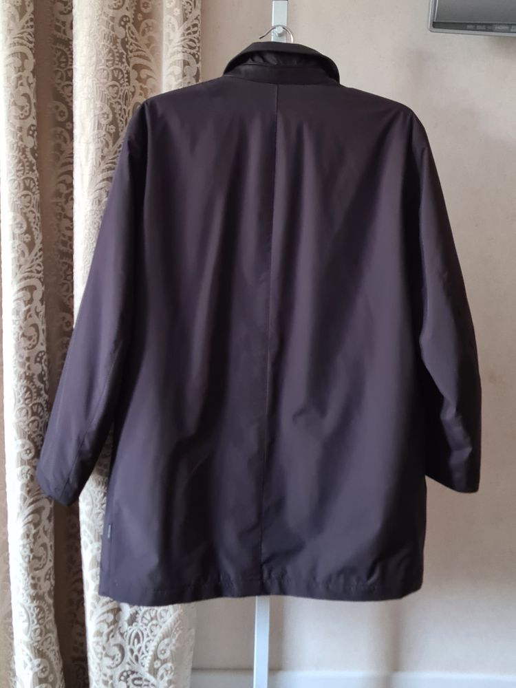 52-54 ориентировочно, возможно больше, замерю, подмышки 63 см, отличное состояние, демисезон, подкладка отстегивается, подойдет и под классический костюм, и под джинсы, качество идеальное, экв 5000=