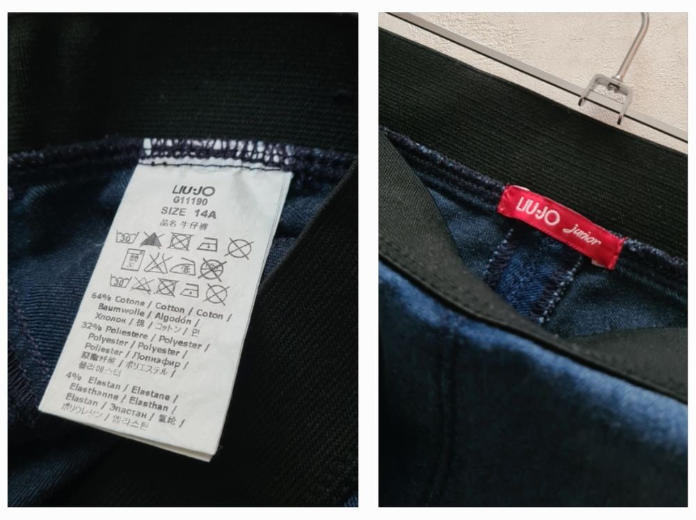 Liu jo, маркировка 14 лет, немного растянута резинка сверху, есть белёсость на одной штанине, так и меняли, в остальном отлично, экв 600=