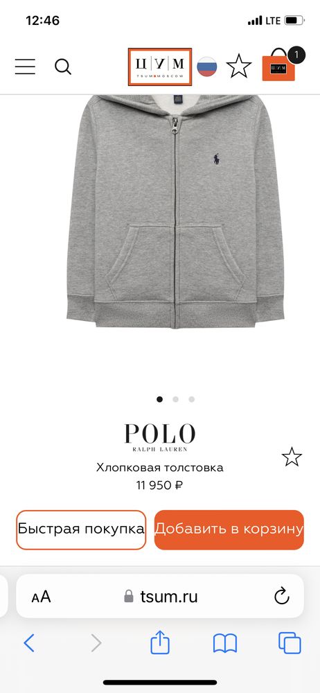 Толстовка Ralph Lauren оригинал, куплена в ЦУМе экв 3000 руб