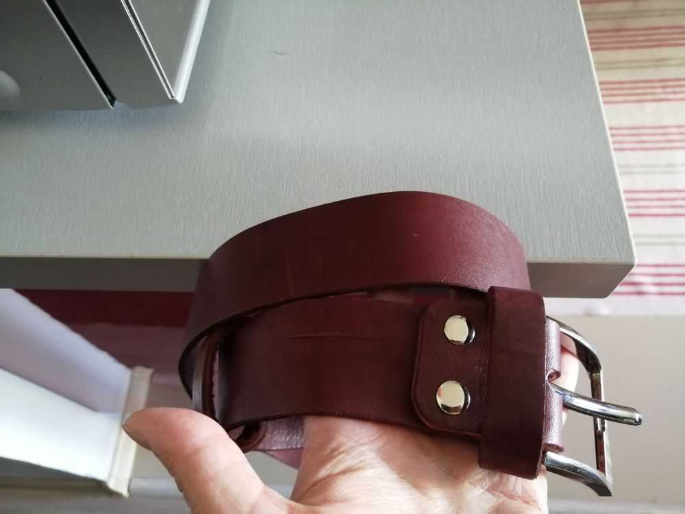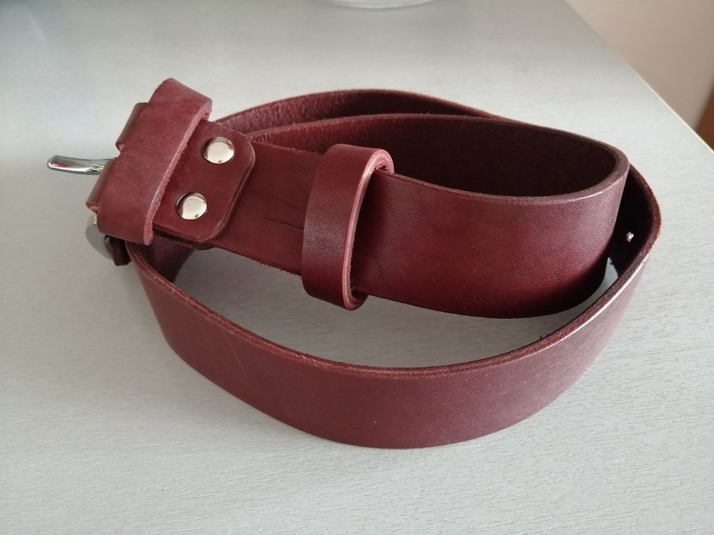 Ремень натуральная кожа. Длина с пряжкой 102 см, ширина стандартная 4 см, новый. Есть нюанс: небольшой порез, но он порезан не насквозь, при ношении, конечно, его не видно, экв 1200. Мне на талию около 40 отлично, остаётся небольшой хвостик ещё.