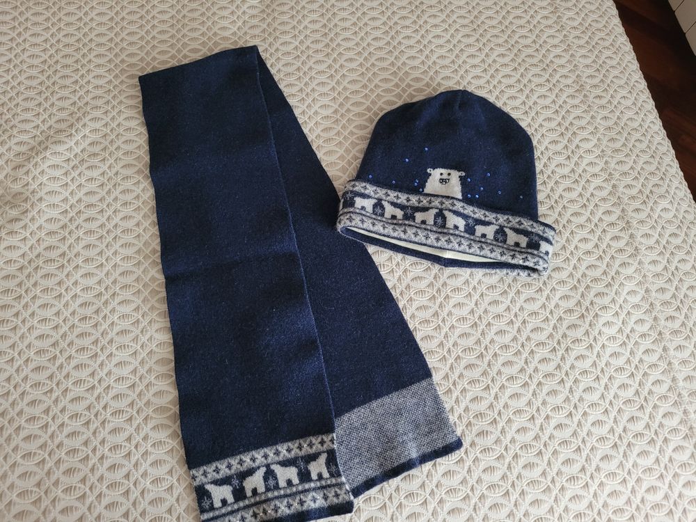 11. Комплект очень теплый Dan&Dani. Меняла здесь. Шарф мы не носили, вроде прошлые хозяева то-же не носили. Шапку мы носили не много. Она на подкладке, очень теплая. Дочь носила в 9 лет. Мне на подростковый размер она отлично то-же. Экв 2500 руб.