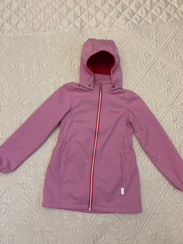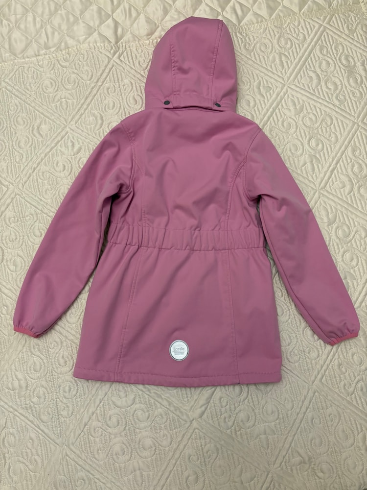 куртка-плащ Lassie Soft Sell, размер 122 см. Цвет розово-сиреневый.Состояние отличное, микро пятнышки есть, незаметные. Потертостей и дефектов нет.Длина по спинке 58 смДлина рукава по маховому шву 39 см.Куртка пластичная, не стоит колом, очень удобная.