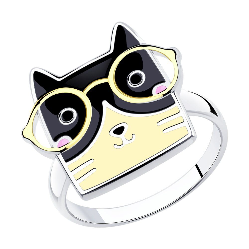 Кольцо из золочёного серебра с эмалью, размер 17, вес 3.14 гр.