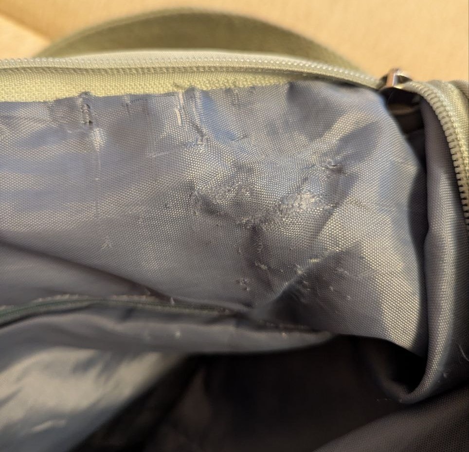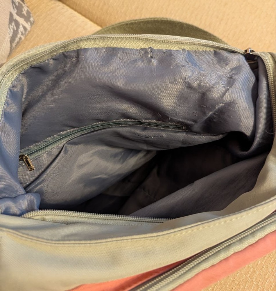 Внутри с одной стороны немного посеклась подкладка, в остальном всё отлично