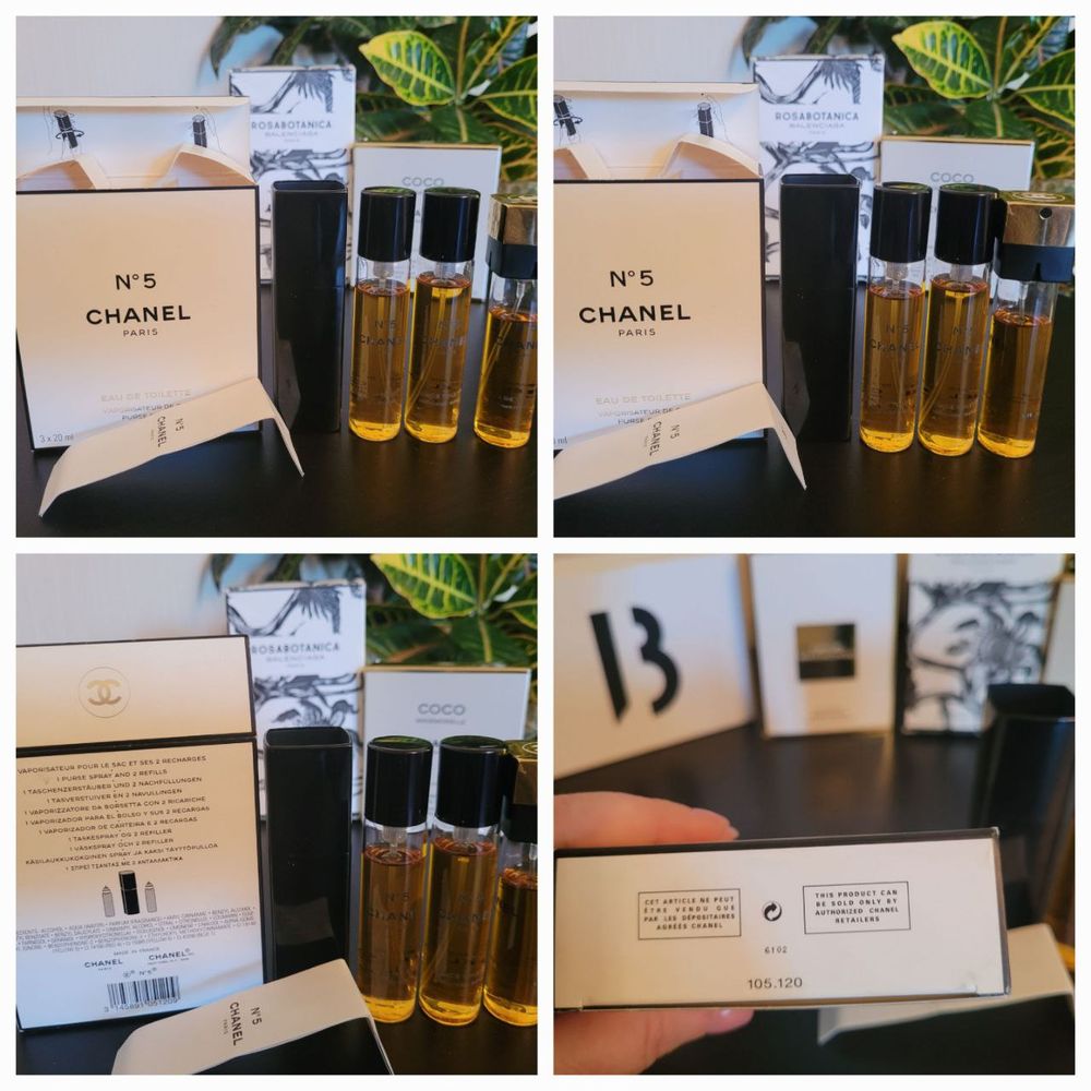 5. CHANEL №5 twist and spray. ТУАЛЕТНАЯ ВОДА TWIST AND SPRAY С ДВУМЯ СМЕННЫМИ ФЛАКОНАМИ. Тревел-версия, красивый вариант для сумочки. Не запаска - полный комплект с красивым кофром. Остаток на фото. 2 новых флакона по 20 мл, и и почти полный третий флакон (без чуть-чуть). Эквивалент 11500 рублей.