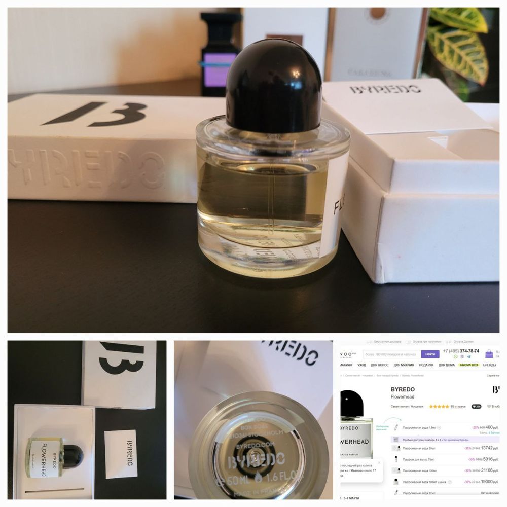 1. Парфюм Flowerhead Byredo. Объем флакона 50 мл, остаток около 45 мл. Полный комплект в коробке, еще из самых первых выпусков. Невероятно красивый аромат, очень стойкий. Эквивалент 12 тысяч.