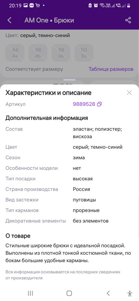 Тоже очень тёплые брюки, на 46 размер, прямо толстый материал. 1400