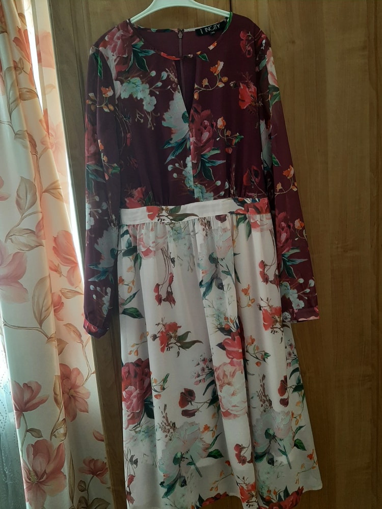 Прошу прощения, что неглажено. Платье Emka, размер 46, но ближе к 48. Плотная ткань, хороший состав, надето 1 раз на мероприятие. 5000