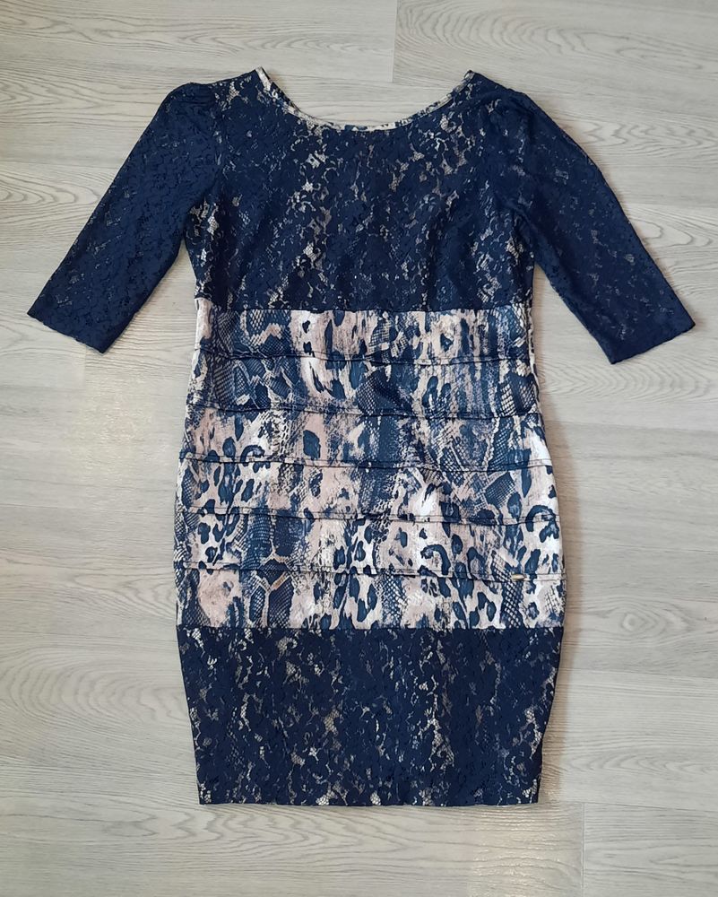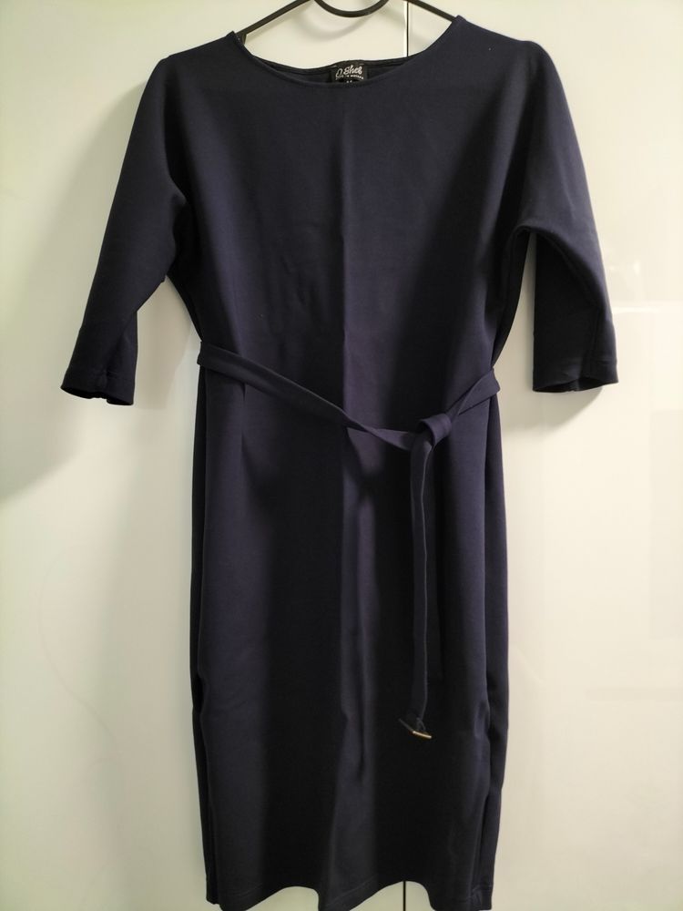 Платье синее в отличном состоянии р 52-54 примерно , длина 96 см, полуобхват груди 62 см, 1000