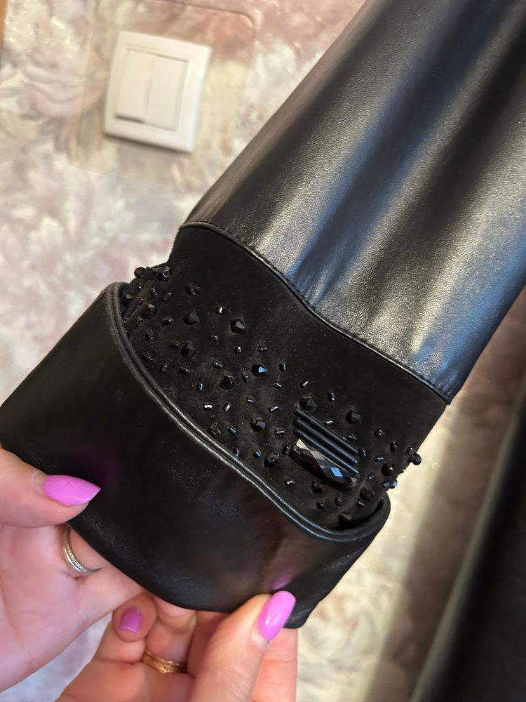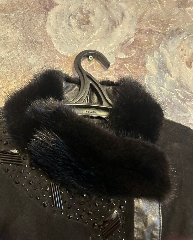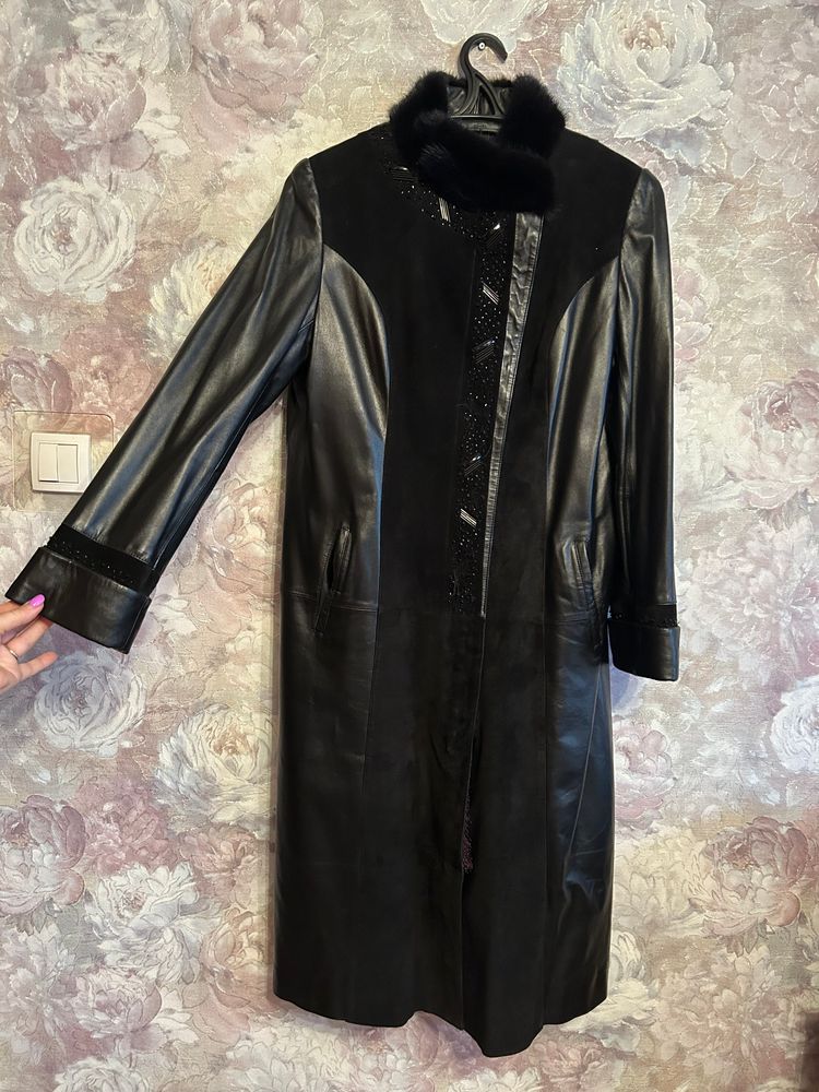 Пальто демисезон натуральная кожа и замша, мех норки, украшено бисером, р 52, в отличном состоянии, одето несколько раз. Без утеплителя