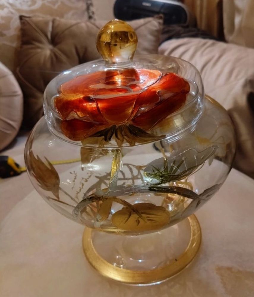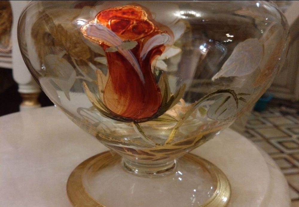 Высота 21 см. В отличном состоянии за исключением одного ньюанса . Есть незначительная утрата краски на розочке-см.на предпоследнем фото.