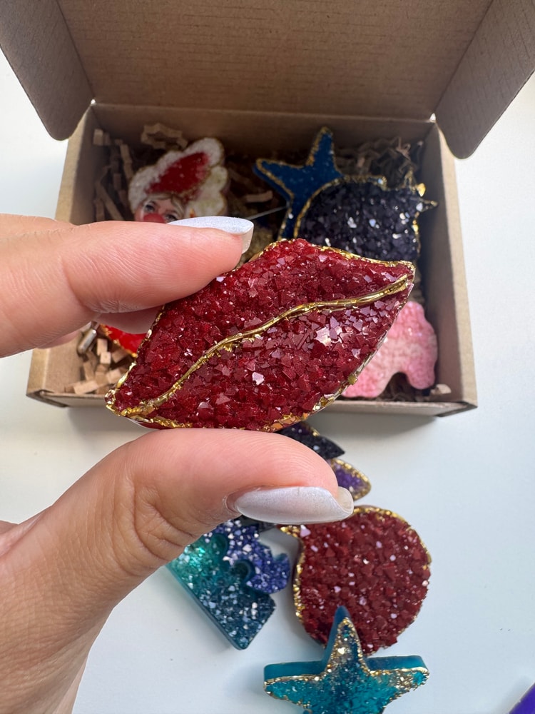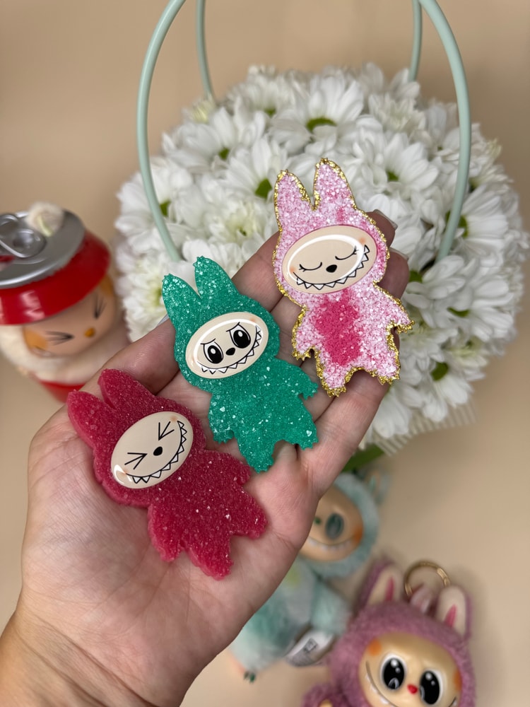 Лабубу Labubu из эпоксидной смолы с эффектом кристаллов, остался зеленый и розовый слева. Это заготовки, могу сделать брошь или брелок, по желанию. Экв.1200 в наличии
