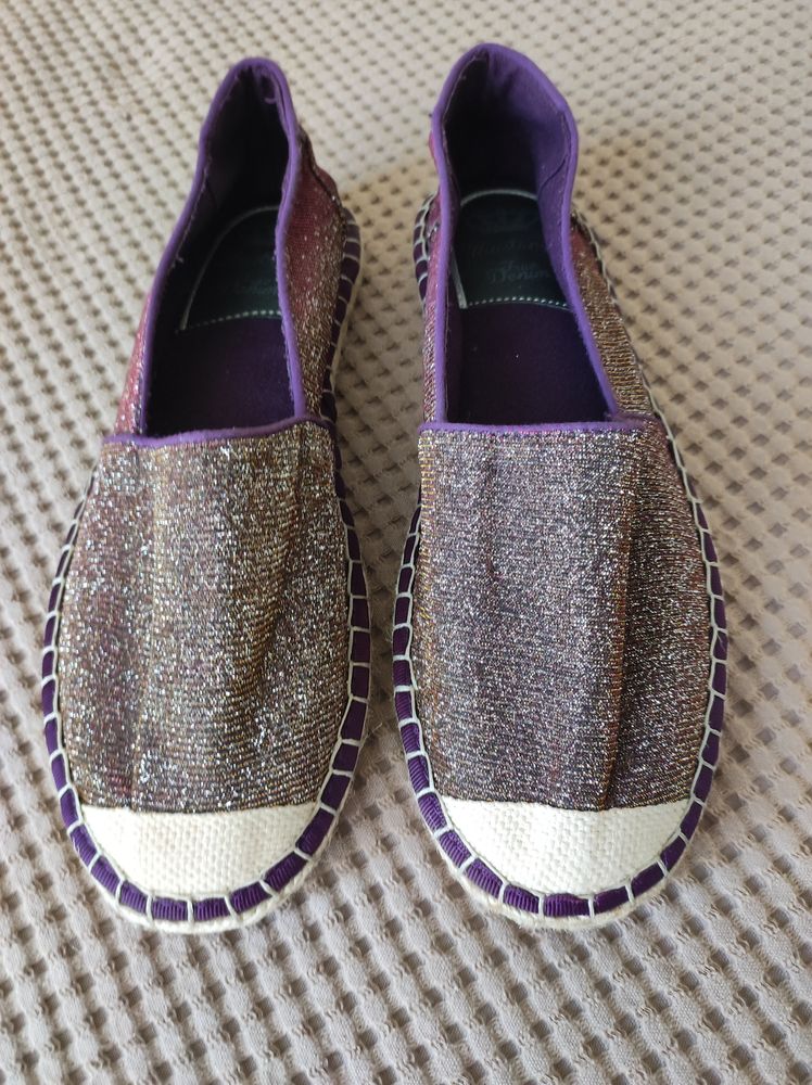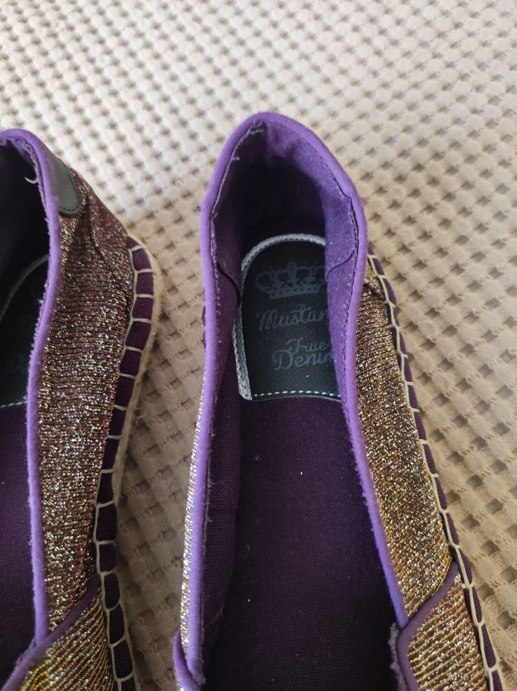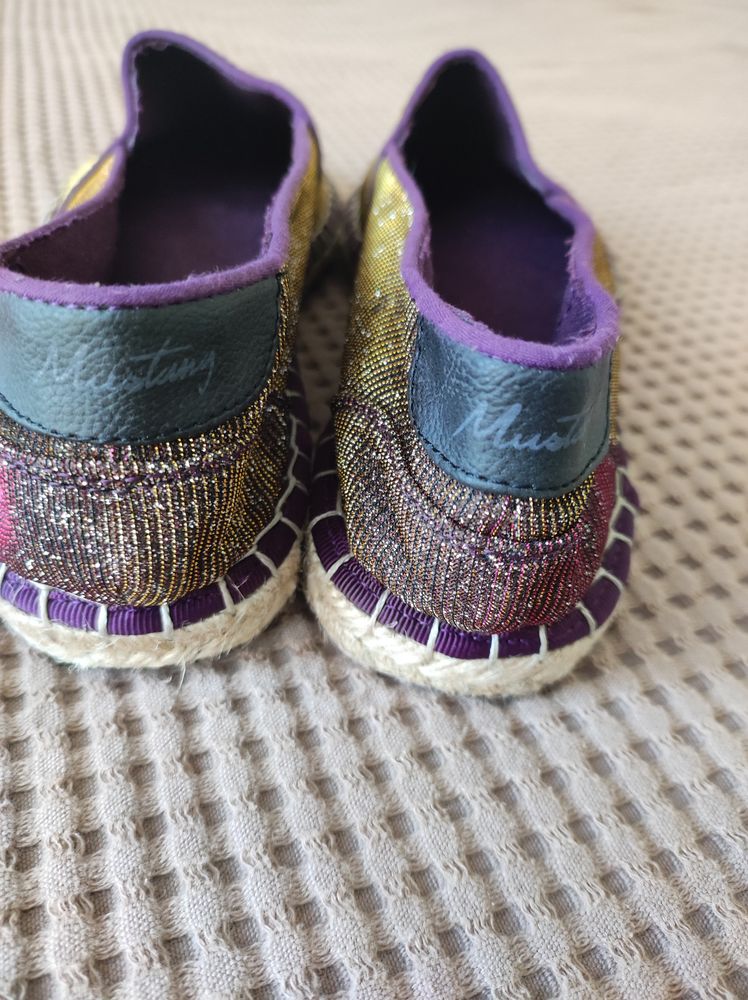 Эспадрильи mustang 38 размер, стелька около 24, 24.5 см трудно измерить, на узкую и возможно среднюю ногу, мне на широкую не подошли, эквивалент 3500.