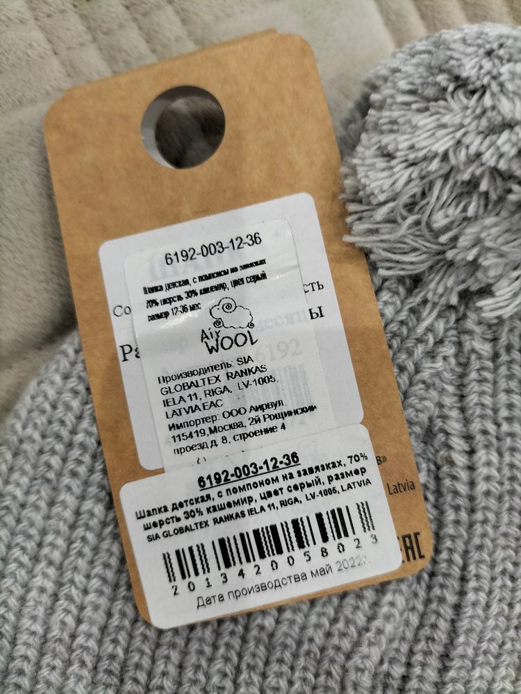 Новая шапка, нежный светло-серый цвет, на фото получилась темнее, шикарный состав, подойдёт от 6 месяцев и до 2х лет точно (в зависимости от размера головы малыша). Экв. 2000