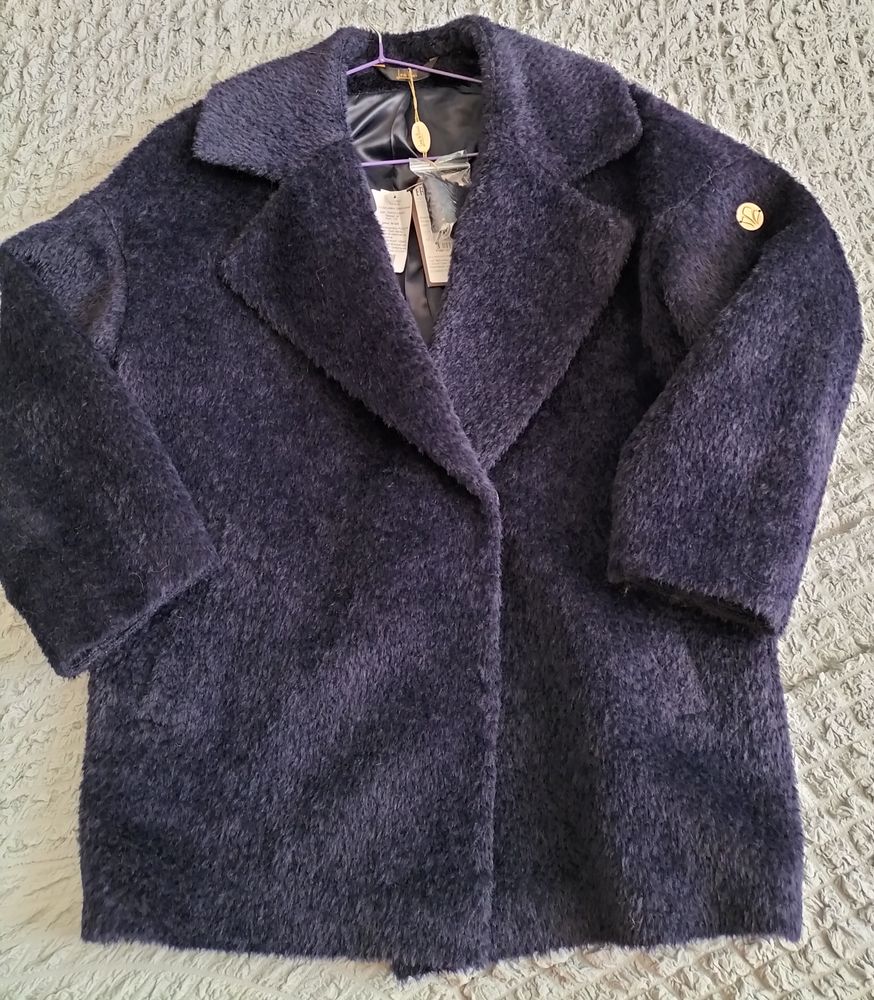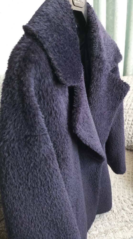 Пальто премиум из натуральной 100% альпаки от бренда Leo Vinci, новое с этикетками. Цвет очень красивый, заявлен тёмно-синий, но по факту имеет ещё и глубокий фиолетовый оттенок. Жаль, но фото не может передать всей красоты этого пальто. Размер производителя 42, но модель оверсайз, отлично подойдёт и на 44 и на скромный 46 размер. Очень теплое, носить можно и при минусовой температуре. Длина авто леди. Застёжка на кнопку. Стоимость на ценнике более 34 тыс. Экв. 34000, меняю очень выборочно.
