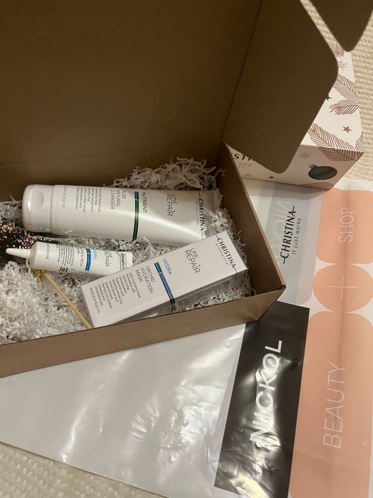 Новый подарочный ( коробка, пакет) набор от Christina ультраувлажняющая маска Орходея 60мл,легкий очищающий гель 250мл,сыворотка для кожи вокруг глаз . Общую цену можно посмотреть на сайтах Кристина .