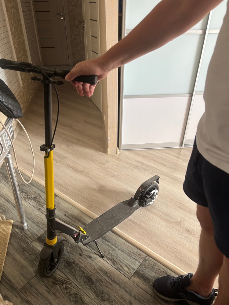 Коляски, автокресла, велосипедыСамокат для взрослых и подростков новый, по состоянию колес это видно. Коробки не было. До 100 кг, ручной дисковый тормоз, надувные колеса с амортизацией 200 мм. Экв 7000