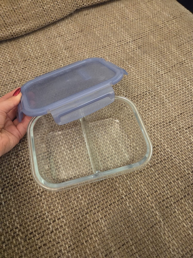 Посуда, кухонная утварьесть 2 штуки. контейнер стеклянный поделен пополам перегородкой. Крышка плотно закрывается.