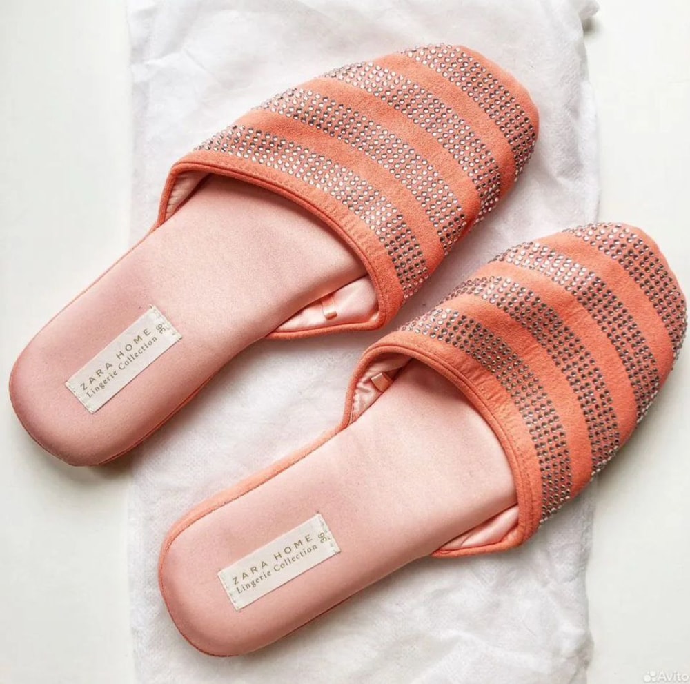 Тапочки Зара оригинал шелковые в стразах, 36 р-р, новые - экв 2500р