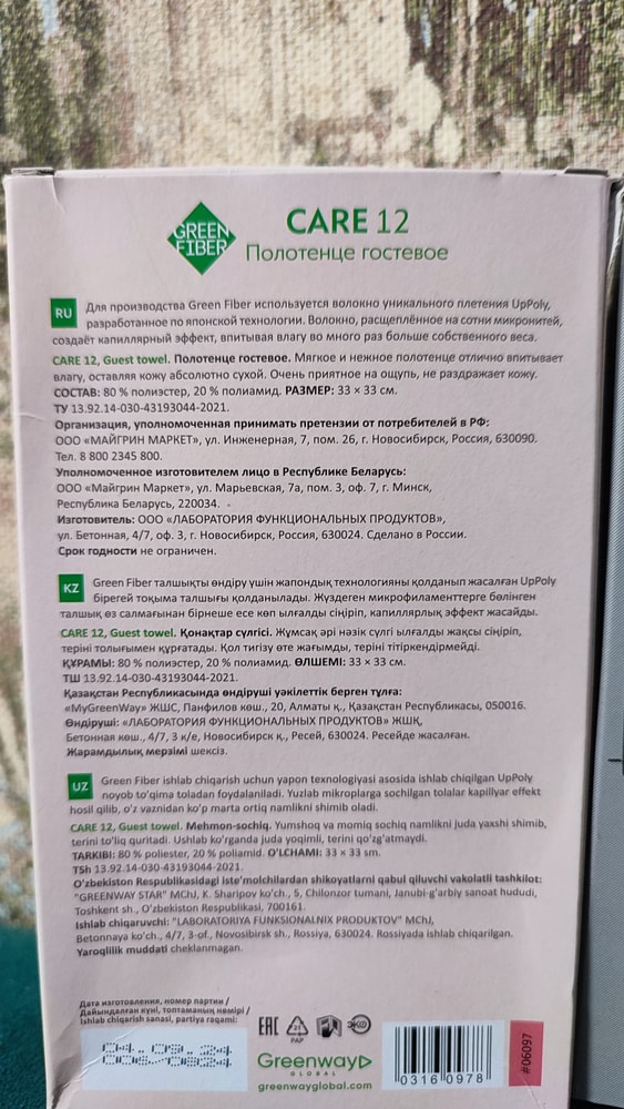 Выполнено из уникального волокна плетения UpPoly, разработанного по японской технологии. Волокно, расщепленное на сотни микронитей, создает капиллярный эффект, впитывая влагу во много раз больше собственного веса.