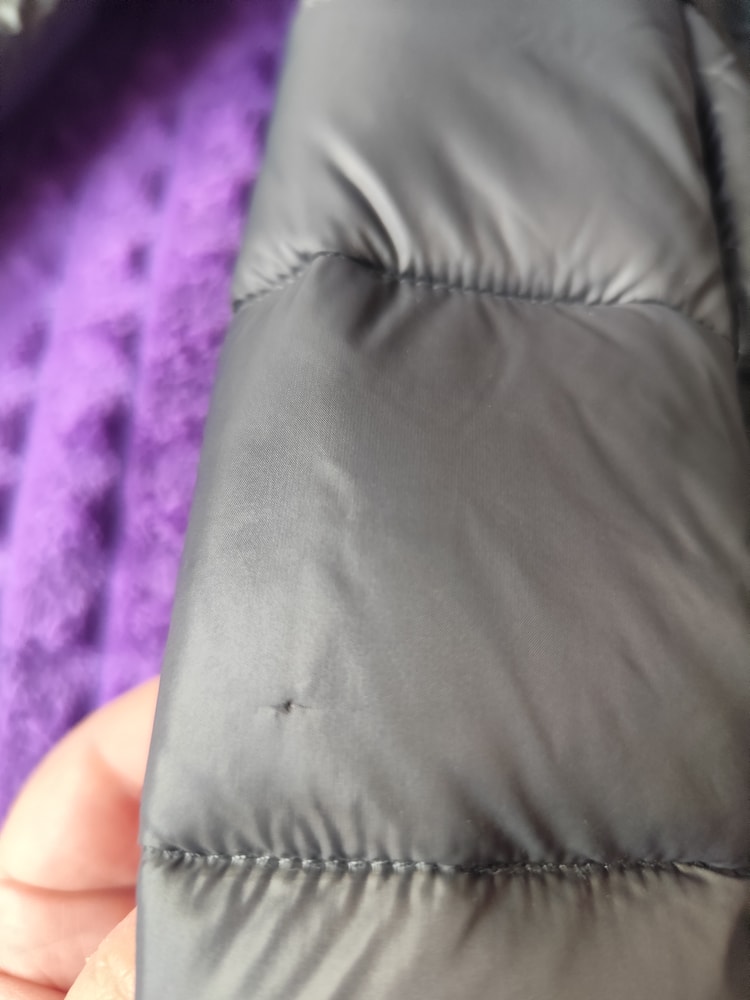 Есть маленькая точка, не зацепка, дырки нет, полностью в идеале, одевался считанные разы.