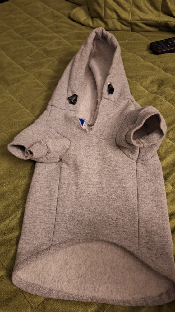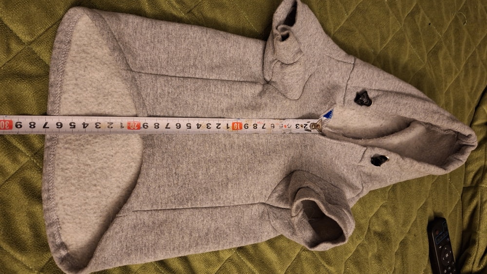 Толстовка голубая, флис, для собак мелких пород. Одета пару раз. Размеры на фото, она чуть шите, чем серая. Эквивалент 1000 руб.