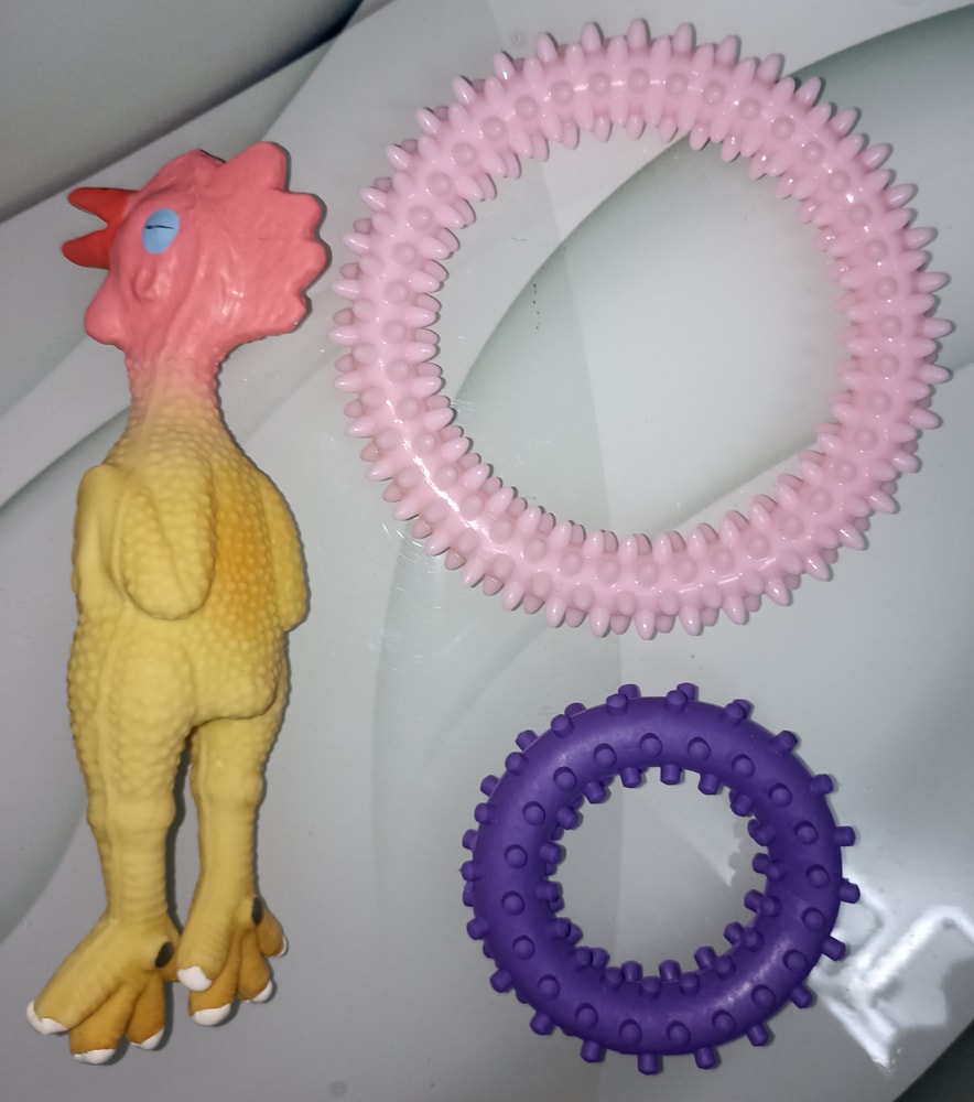 Игрушки для мелких собак,наш не игрался с ними, любит в основном мягкие игрушки и мячики, ЭКВ. 200 руб. за 1 шт.