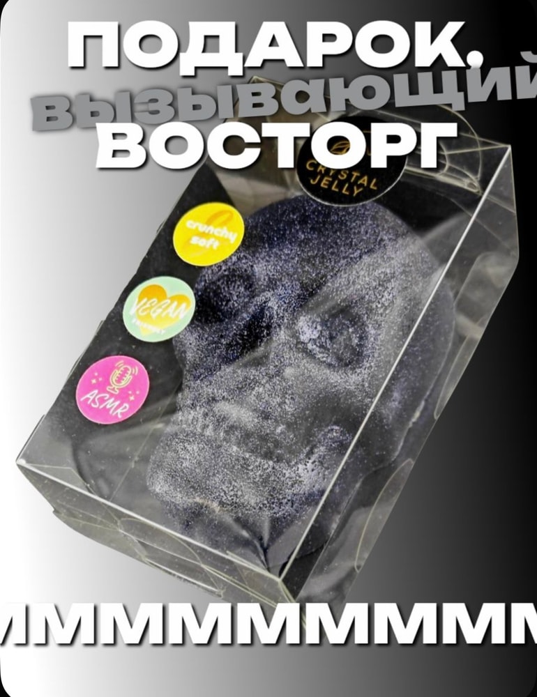 Блестящий гигантский мармелад, вес 300 грамм, очень эффектно смотрится ) брали для Хеллоуина на подарки гостям, остались 2 лишних. Мармелад со вкусом ледяной колы и энергетика. Экв 1000 руб каждый. Упакованы в коробочку, отлично на подарок.