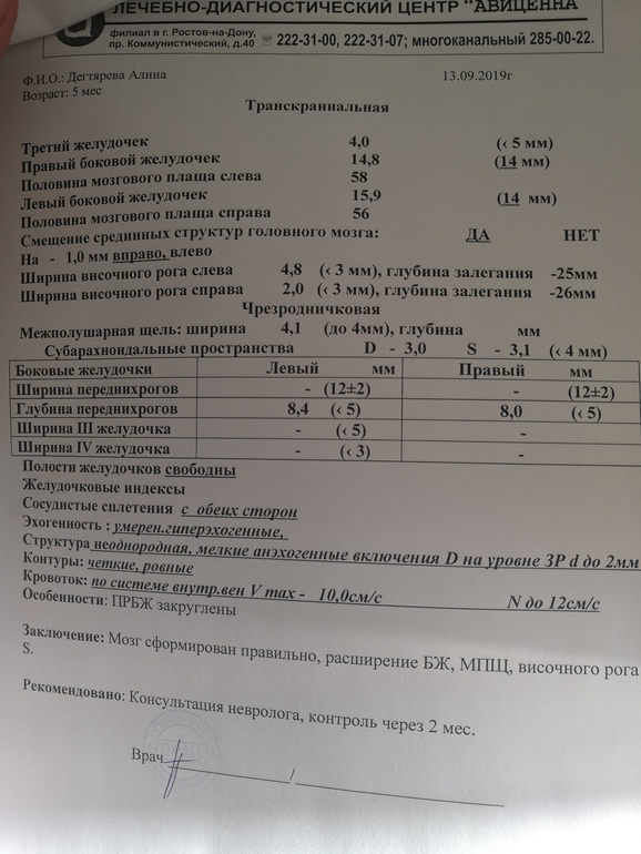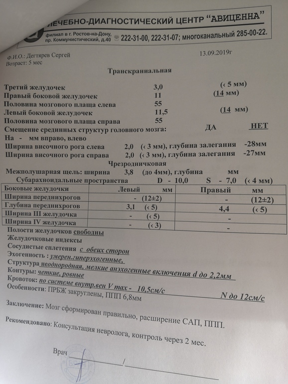Консультация невролога, вам написали. Но главное хорошего невролога! Кист никаких нет. В заключении ни слова. Рога немного увеличены, это у всех. А так повторите через 2 месяца НСГ, мы каждый месяц делаем.
