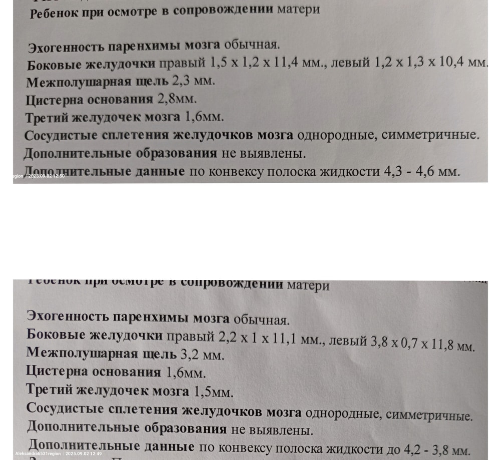 УЗИ головыРодились на 36.3 недели, с весом каждая 2300 рост у каждой 45 см.