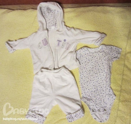 3. Белый велюровый костюм. Размер 3 мес (как раз август-сентябрь) Все бы ничего, но нежно-фиолетовый цветочный принт.