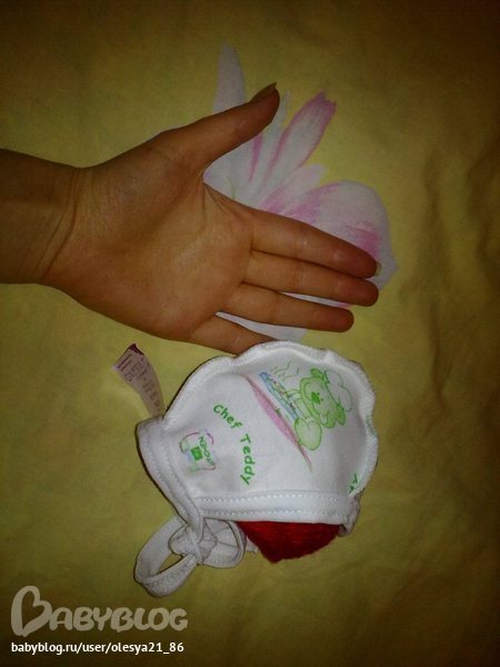 Чепчик я купила самый маленький))) Так, побаловаться! Если получится - оденем))) Нет, так нет)))