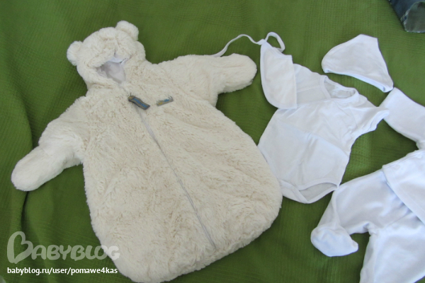 А это уже выписной наборчик. Медвежонковый мешочек. И комплект, подаренный моей подругой для малыша!