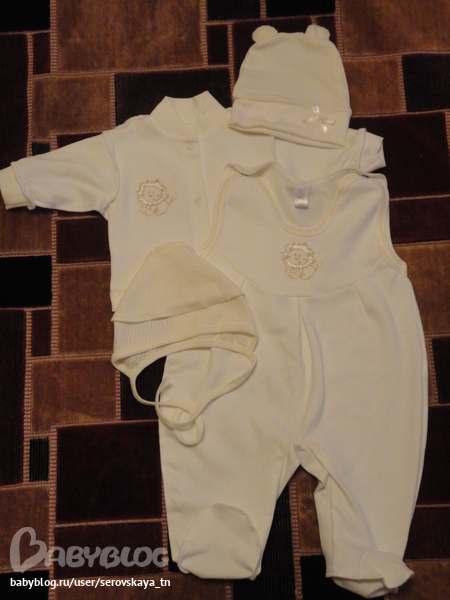 А этот комплектик на выписку возьму. Приятненький такой на ощупь. Конверт не покупала, потому что мужа сестра обещала сшить нам белый. Так что покажу когда готов будет)