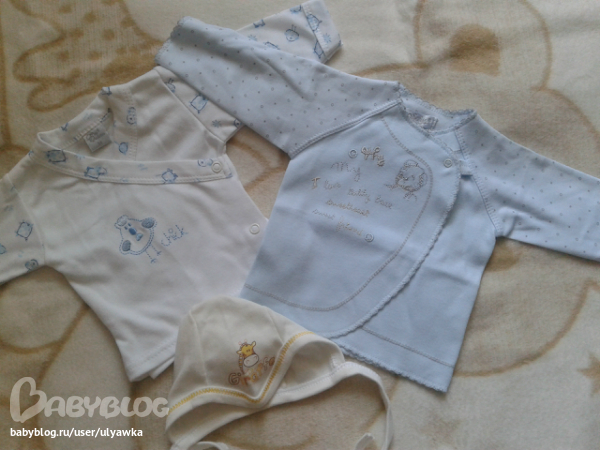 Голубую распашонку планирую одеть на выписку под наш красивенький комбинезончик!