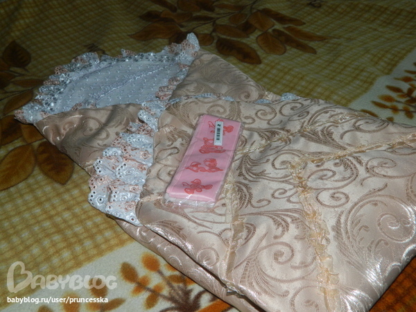 Приданое для малышаУма не приложу как точно одену малышку на выписку. Бодик есть, правда с длинными рукавчиками. но думаю, жарко не будет. Как думаете? потом носочки и чепчик, либо шапочка нарядная 9она трикотажная, правда и двойного трикотажа - жарко в ней не будет?). ну и потом сверху, если прохладно - одеялко синтепоновое тонкое - сами шили, а если жарко...тут многие пишут. что просто одевали уголок сверху. Я купила нарядный уголок. А к нему нужна ленточка? он вроде по размеру маленький....разве получится в него один завернуть? Может сверху пеленку а потом уголок? Тогда нужна ли ленточка? Сейчас у нас жара, духота...сама на улицу выходить не могу. Плюс 30.