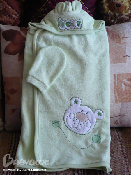2) Полотенце очень нежное,мягкое (цвет на фотке получился бледный).Просто балдею от ушек и мишки!!!