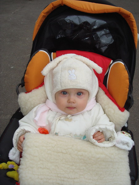Аврорик уже большая была,уже в декабре ходить начала,у нее был какой то простой зимний комбези в коляске лежал конверт(ножки всегда в тепле были,а у Тимона Керри был и Орби на пуху,но чаще я закутывала в пледик,очень удобно было