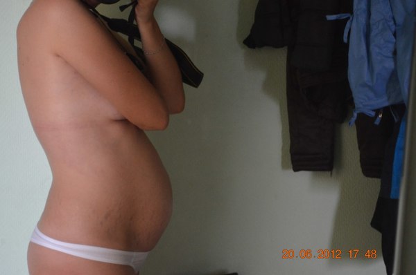 По моему практически одинаковые животики ))) А ваш очень красивый!! Не переживайте, а размеры животов сравнивать это вообще глупо и не имеет смысла, так как это зависит от многих причин, которые НИКАК не связаны с малышом, главное чтобы высота дна матки соответствовала сроку, на вашем сроке она должна быть на 2 см. ниже пупка (можно прощупать лежа на спине).