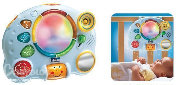 У нас похожий ночник от Vtech с медведем! Дочь начала им интересоваться только с 5 месяцев и то днем. На ночь она засыпает у груди и я перекладываю ее в кроватку. Ночник можно было не покупать - лишнее. И вообще считаю, что чем меньше игрушек в кроватке, тем лучше спит ребенок.