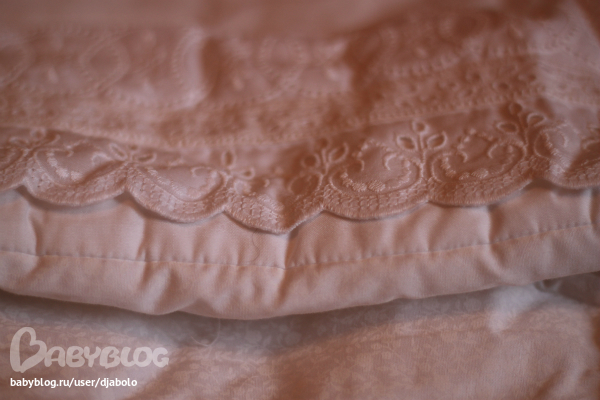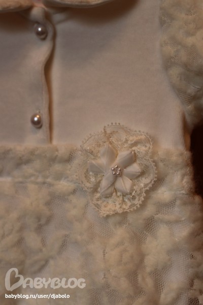 А конверт на выписку взяли демисизонный, серия "Пастораль". Специально зимний брать не стала, т.к. прекрасно понимаю это на один день, для красивых фотографий и лично для меня:)))) Плюс нам не идти пешком, а ехать на машине, а там тепло. Полностью хлопковый, даже кружево, что меня и порадовало, но не нравятся мне все эти кружевные гипюровые конверты, а тут все отстегивается еще. Цвет кипельно белый.