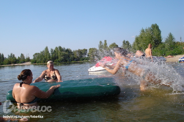 Прыжки в воду через/по матрасу.... было круто))) Меня поулыбало это зрелище (сестренка прыгает)
