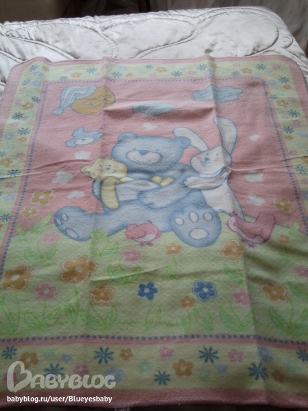 Одеялко было упаковано так, что был виден только медведь голубой и белый зайчик, подумалось, ой, как прелестно для мальчика......(смотрим фото ниже