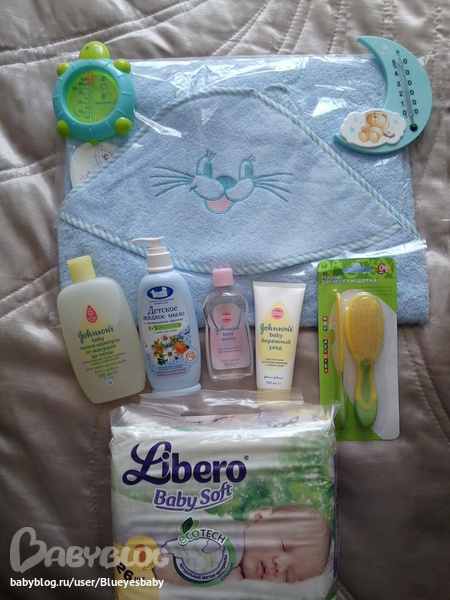 Мыльно-рыльное))) Тут нам подсобил Либеро со своей акцией на сайте ( подгузы, шампунь-пенка, масло и кремчик - в подарок)