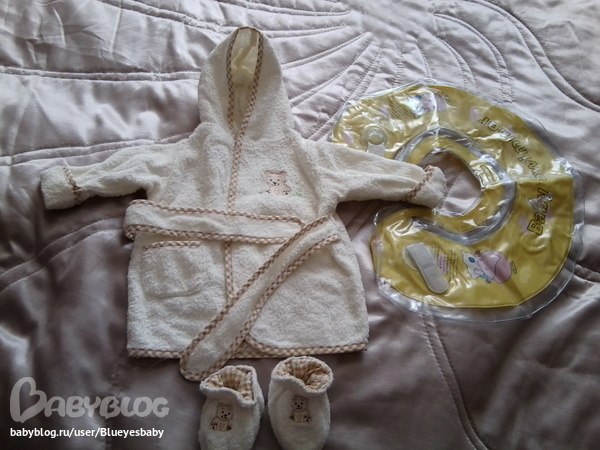 Ми-ми-мишный халатик после купания и тапули к нему (подарок от сестры из Германии) и круг для купания