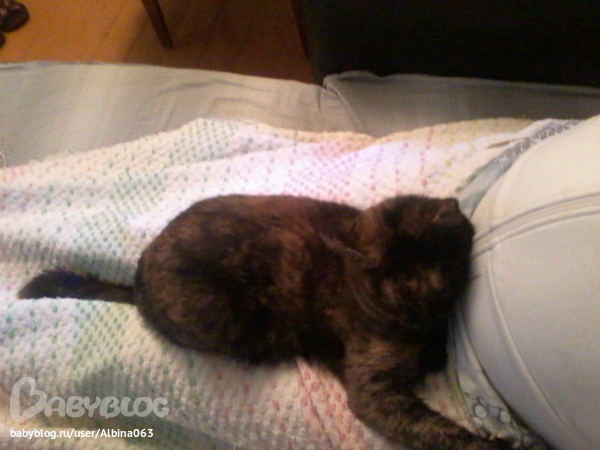 обожаю кошек! а твоя просто умничка. у меня две котеи,все время спят со мной,а младшая все время с пузякой обнимается и урчит))))