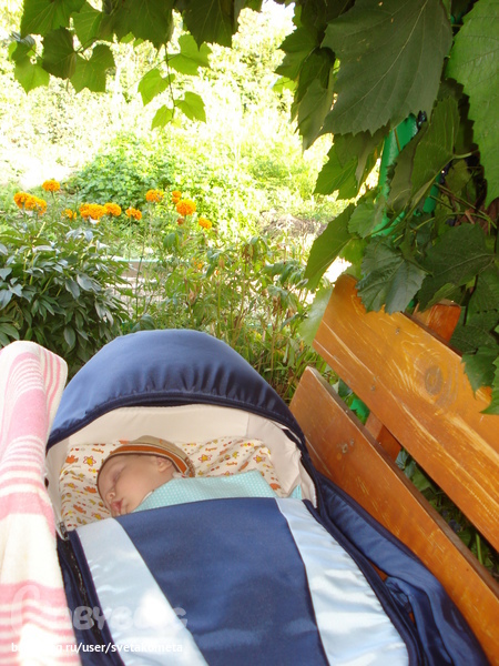 Тёмка в ней катался в автомобиле, спал на даче в беседке, спал в гостях, спал на балконе.