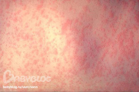 Сыпь обычно начинается с лица и постепенно опускается ниже , шея, грудь, руки , спина, попа, ноги. Высыпание длится обычно 5-7 дней