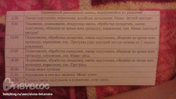 ну тут распорядок ухода за ребенком) про то что в туалет маме ходить они тоже не написали)