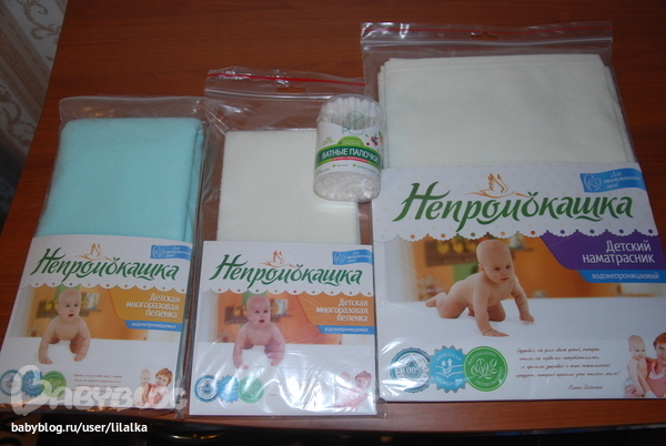 3. Непромакаемые пеленки и наматрасник. Они очень приятные на ощупь, махровенькие. Пеленочки взяла разного размера - побольше и поменьше.